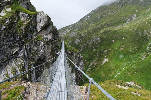 Vom Pass Diesrut ging es bergab, über eine Hängebrücke und schliesslich zur Terrihütte. Da das Wetter wenig einladend war, machten wir keine Pausen und erreichten unser Ziel schon früh. Die Hütte ist sehr gross, sie bietet über 100 Schlafplätze und je später der Tag wurde, desto mehr füllte sie sich. In unserem Zimmer hatte es gefühlte 5 Grad, uff, das würde ein langer Nachmittag und eine noch längere Nacht werden. So schlimm war es dann doch nicht, die Sicht aus dem Fenster auf eine Herde Steinböcke, eine Crèmeschnitte und ein (oder zwei) Apéro liessen den Rest ganz schnell in den Hintergrund rücken.